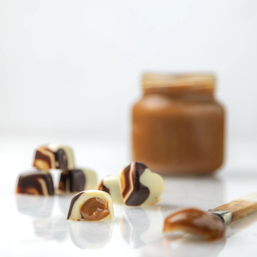 - 2 bombones chocolate semi-amargo rellenos de dulce de leche
