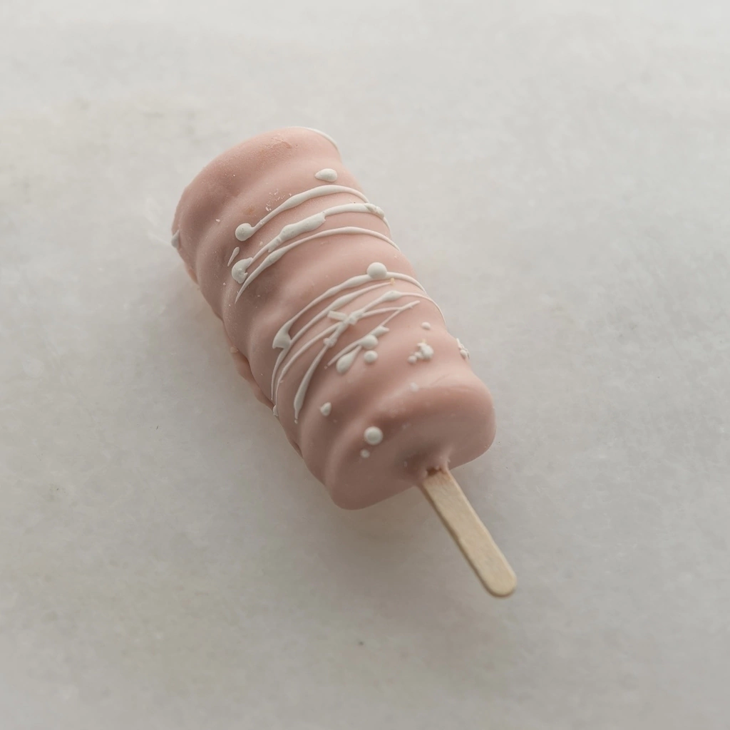 Mini ice pop bañado en chocolate relleno de helado de Frutilla a la crema.